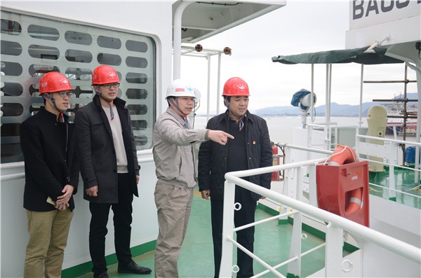 本報訊 1月15日,國資委紀委綜合室主任蔡道振帶領檢查小組至馬尾造船公司對設計研發“六好”黨建模范示范點進行考核驗收,福船集團公司黨群工作部主任劉登秀陪同,馬尾造船公司黨委委員、副總經理張忠寬參加考評會。