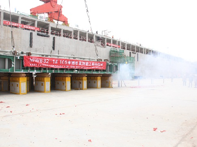 馬尾造船首制105米潛水支持船成功進塢搭載